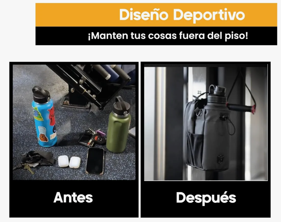 ¿Cansado de dejar tu termo, celular y llaves en el piso del gym, lejos de tu vista o en lugares inseguros?